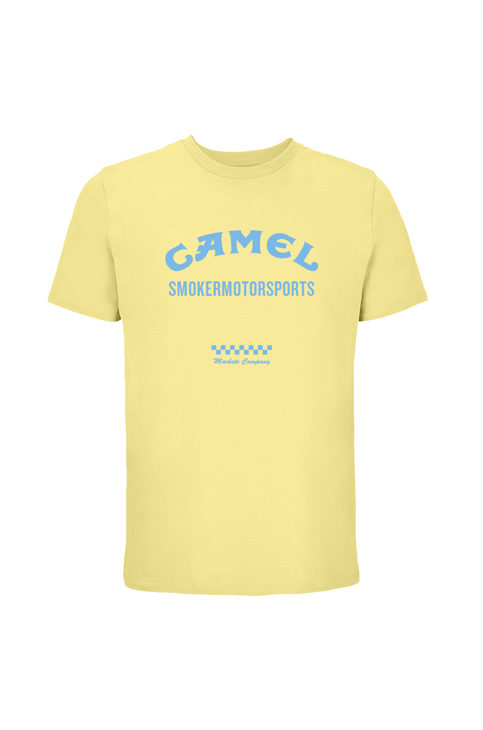 La camiseta Camel de manga corta de Machete Company cuenta con una composición de 100% algodón orgánico. Tiene un escote redondo de cuatro capas. Tiene cubre costuras reforzado en el cuello y en los hombros, además de costuras laterales. En la parte frontal la camiseta tiene estampado el logo de Longboard club y etiqueta cosida en la manga.