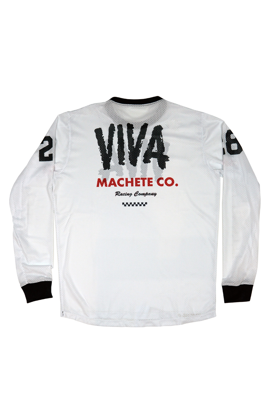 La camiseta MX de Machete Company cuenta con una composición de 78% polyester reciclado y 28% de lycra. Tiene un escote redondo de dos capas. La camiseta puede ir personalizada, es decir, en la espalda se puede añadir tu nombre y tu número de competidor. En la parte frontal la camiseta tiene estampado el logo de Machete Company sobre negro, la espalda va en color negro y las mangas asimétricas, una de cuadros y la otra de rayas. No se utilizan productos contaminantes para el medio ambiente en el proceso de fabricación. También posee el sello de comercio justo, en el que la marca atiende a las responsabilidades sociales de todos los trabajadores que hacen posible la producción y fabricación.