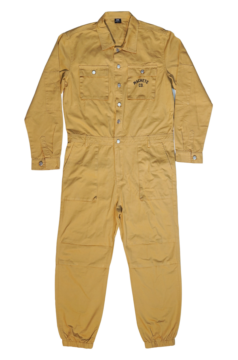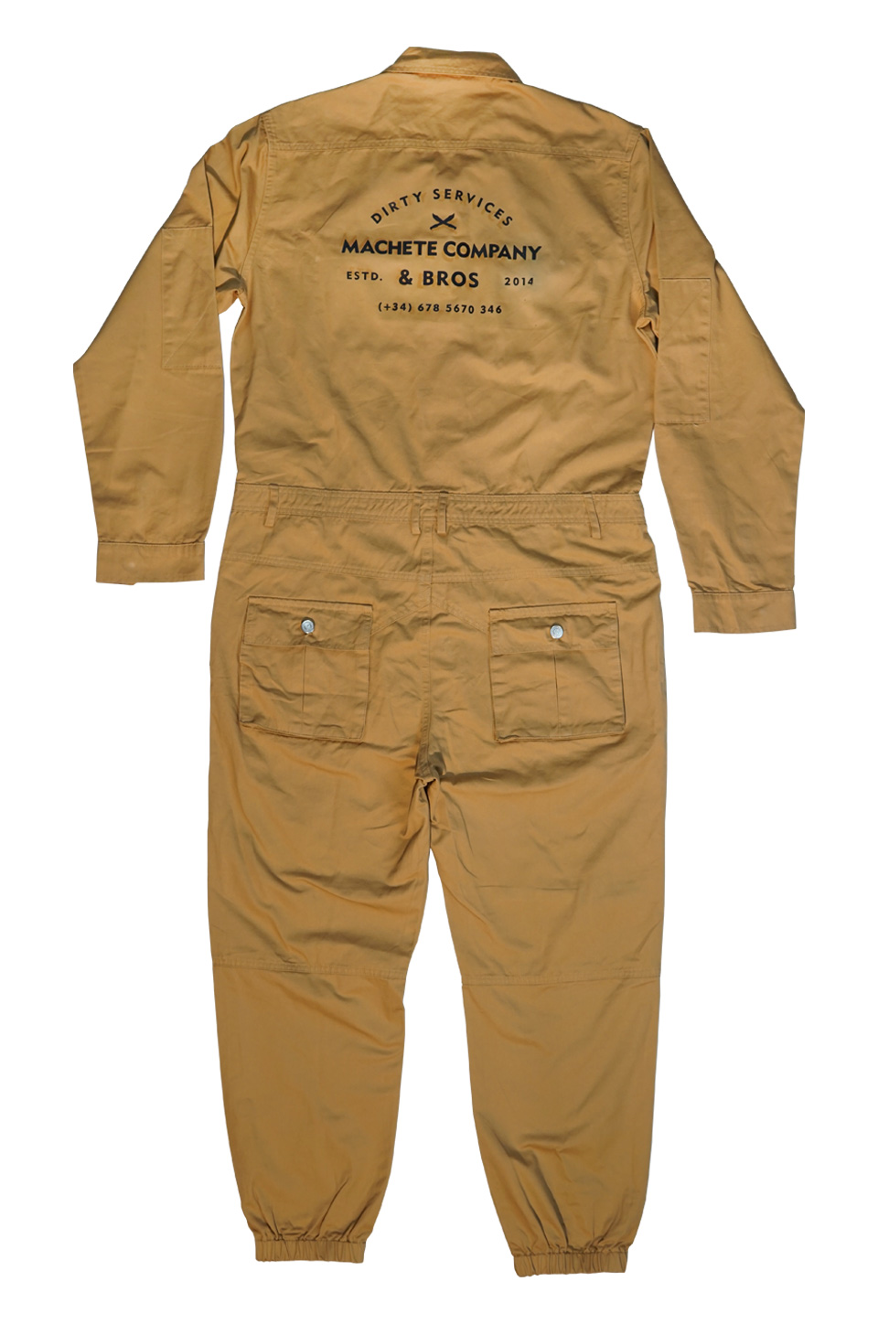 Mono Racing camel, fabricado en sarga de 100% algodón, con botones denim. Estampado en el pecho y en la espalda.